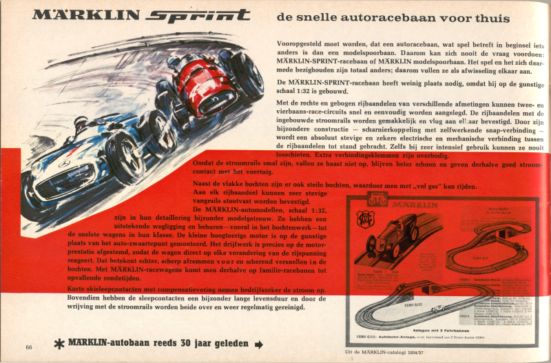 Volgens mij kwam Märklin met de productie van dit systeem net iets te laat op de markt. In de jaren zestig was slotracen enorm populair (ook nu weer trouwens). In bijna elk gezin kon je een racesetje vinden. Toen ook Märklin met het Sprintsysteem op de proppen kwam, hadden veel mensen al een set van een andere producent gekocht (o.a van Fleischmann, Carrera of Scalextric).