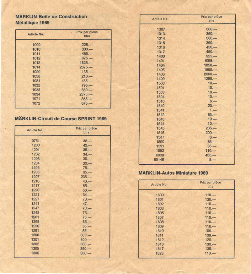 Hieronder een prijslijst uit 1969 (€1 = 40,3399 BEF (Belgische frank)).