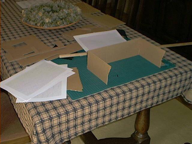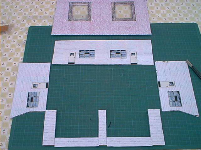 Een tijdje later kreeg ik inderdaad via de elektronische brievenbus de beloofde scans. Daarna was het zoeken naar het juiste bouwmateriaal (karton). Ik zocht en vond in een modelbouwwinkel het gepaste materiaal (modelbouwkarton met een dikte van 5 mm). Dat is wit stevig karton, met een dun laagje piepschuim tussen, ideaal om in te snijden dus. De scans werden in "Word"bladen ingevoegd en op de juiste maat vergroot (of verkleind), waarna ze afgedrukt werden op "HP Premium Photopaper Glossy". De scans werden uitgesneden, het modelbouwkarton eveneens en daarna kon het plakken beginnen. Ik ben er toch wel enkele uren zoet mee geweest, maar het resultaat mag gezien worden, hoop ik?
