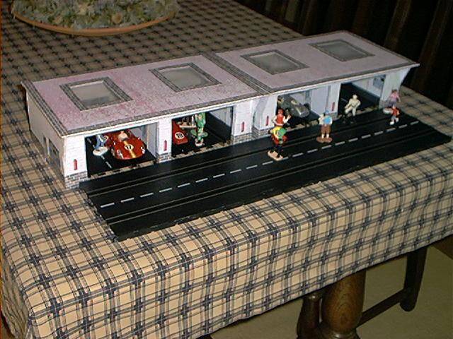 We schrijven begin augustus 2003 als de scenery bijna compleet is (er moeten nog wat "volk" bijkomen). Alle gebouwen werden gemaakt van karton en fotopapier (zie beide "Links" hierboven), behalve de originele carreratribune.