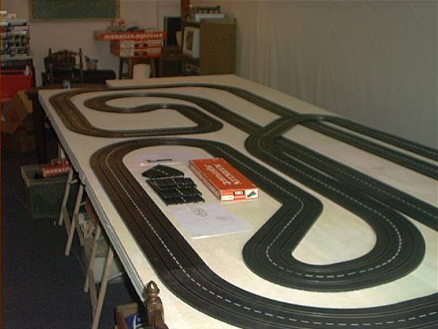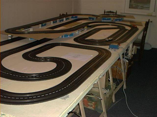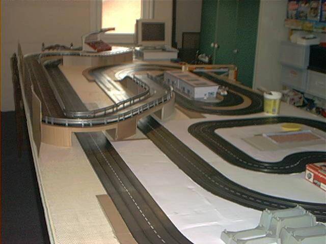 Zover zijn we nu (18.06.03), maar de baan is nog niet klaar. Er moet nog heel wat scenery (gebouwen) bijkomen. Hiervoor heb ik al het een en ander gedownload op deze sites: http://www.carrera4fun.de/ en http://www.132er.de/. Het vervolg krijgt u van zodra ik klaar ben.
